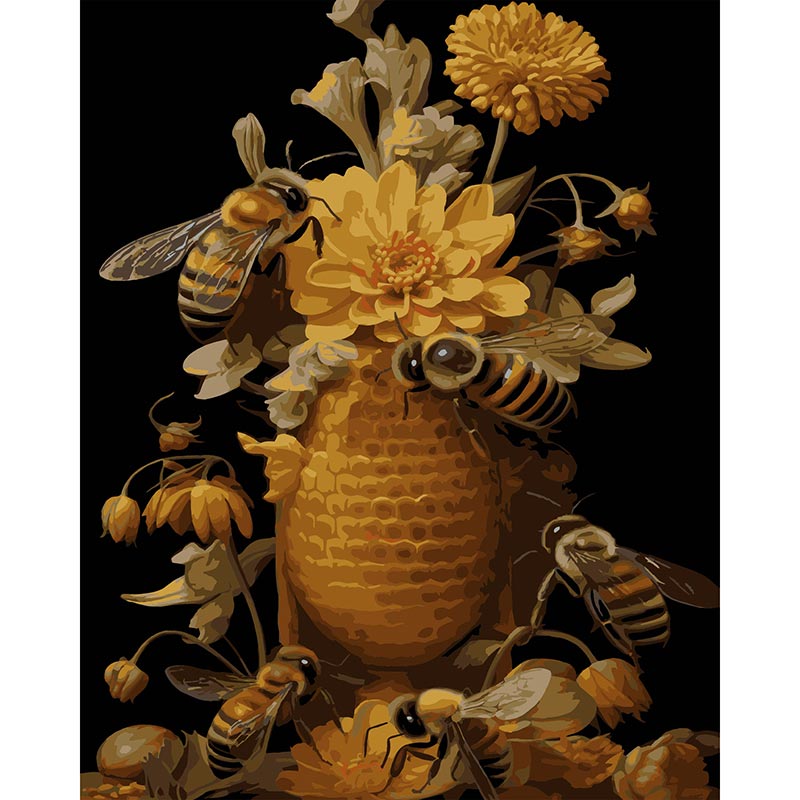 Картина за номерами Stateg Бджоли та квіти на чорному фоні 40х50 см AH1194-16