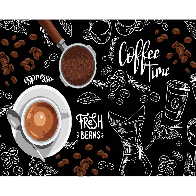 Картина за номерами Strateg ПРЕМІУМ Час кави на чорному фоні розміром 40х50 см (AH1172-12)
