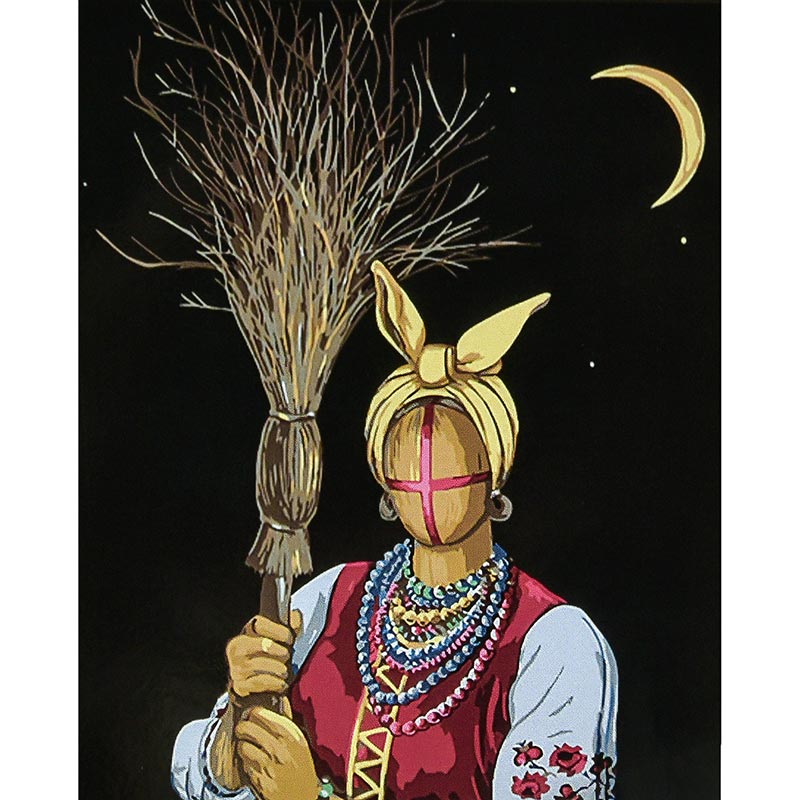 Картина за номерами Strateg ПРЕМІУМ Солоха на чорному фоні з лаком розміром 40х50 см (AH1148)