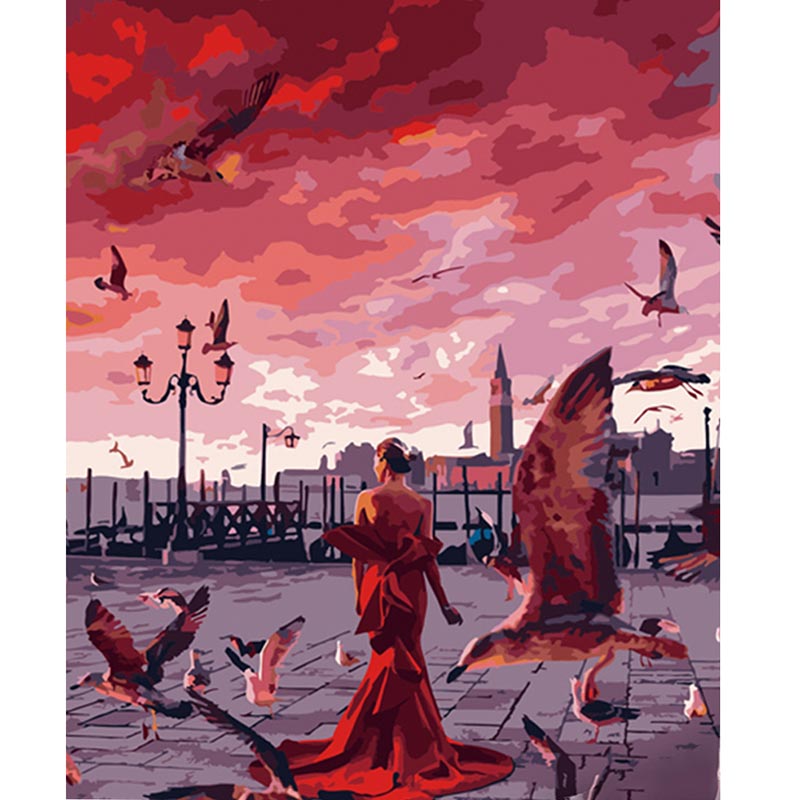 Картина за номерами Stateg Дівчина серед чайок 40х50 см HH017