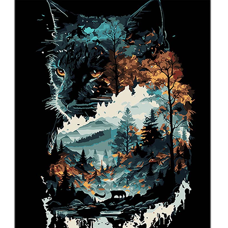 Картина за номерами Stateg Кішка в подвійній експозиції на чорному фоні 40х AH1128
