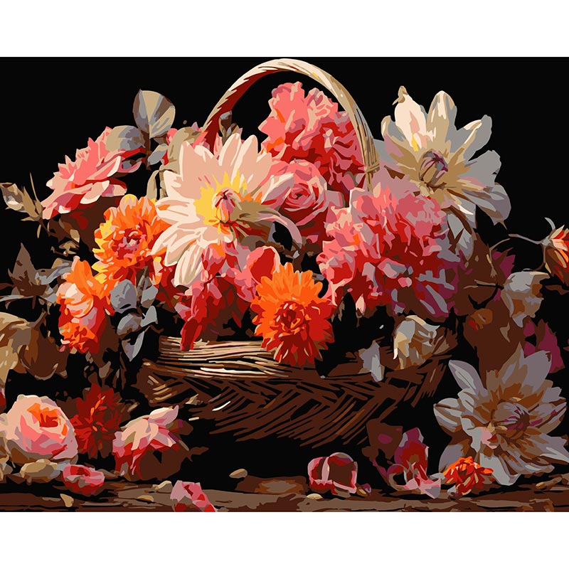 Картина за номерами Strateg ПРЕМІУМ Кошик з квітами на чорному фоні розміром 40х50 см (AH1177-19)