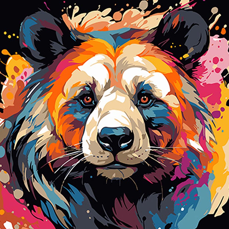 Картина за номерами Stateg Панда у мистецькому стилі на чорному фоні 40х40 AV4040-60