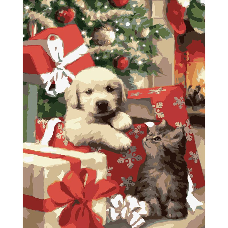 Картина за номерами Strateg Песик і кошеня розміром 40х50 см (VG002 )