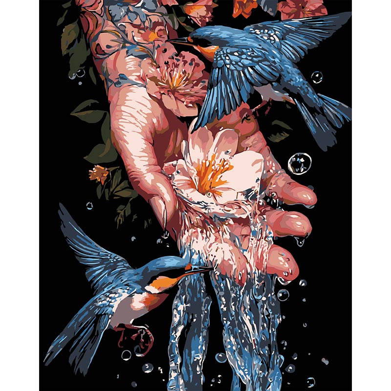 Картина за номерами Stateg Сині птахи на чорному фоні 40х50 см AH1204-17