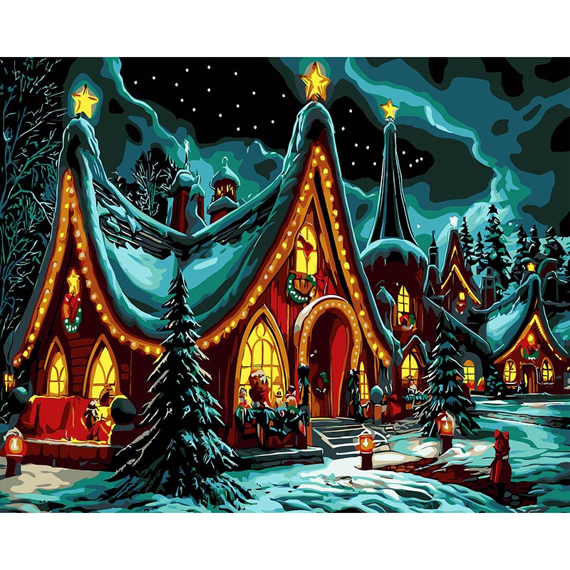 Картина за номерами Stateg Святковий будинок на чорному фоні 40х50 см AH1243