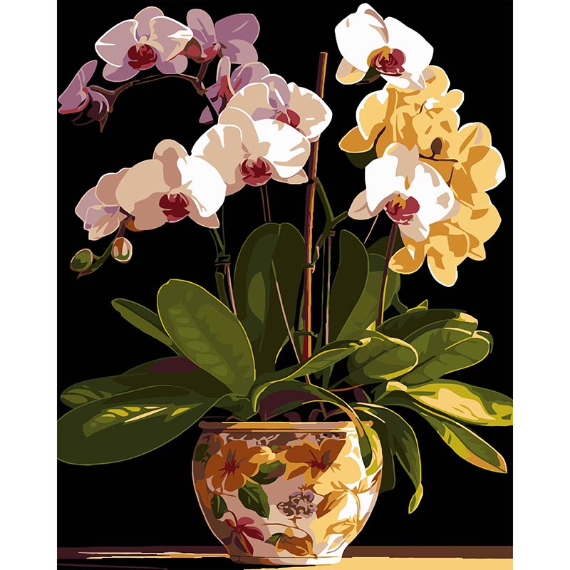 Картина за номерами Stateg Вазон орхідей на чорному фоні 40х50 см AH1198