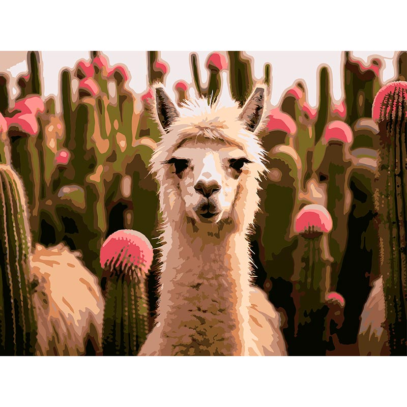 Картина за номерами Strateg Альпака серед квітів 30Х40 см SS-1265