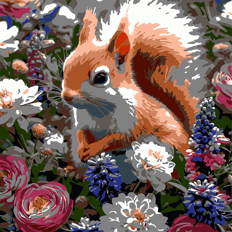 Картина за номерами Strateg Білка серед квітів 30х30 см ES-0912