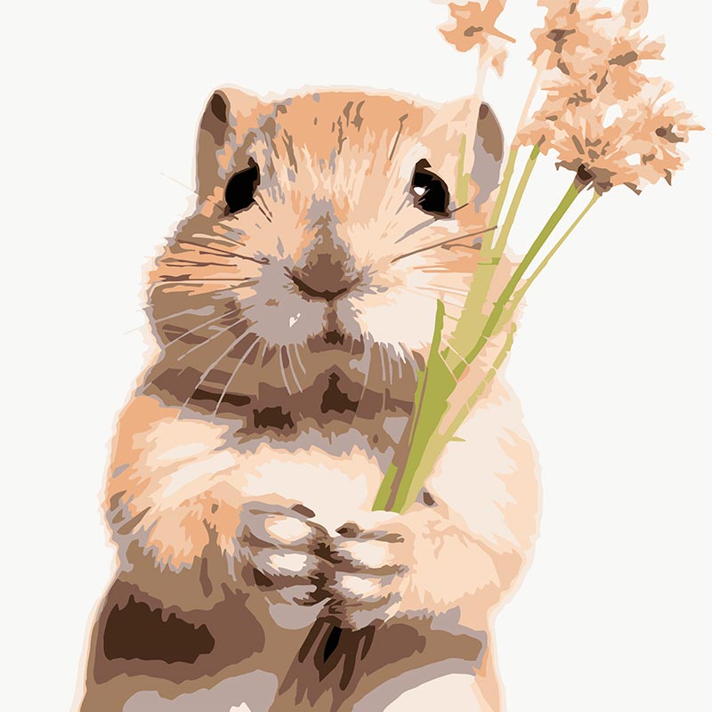 Картина за номерами Strateg Хомяк з квітами 20x20 см HH8027