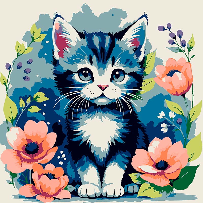 Картина за номерами Strateg Кіт серед квітів 20x20 см HH8029