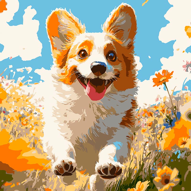 Картина за номерами Strateg Коргі в осені 30х30 см ES-0908