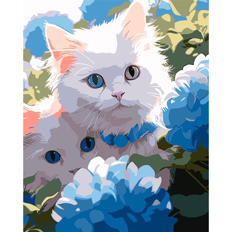 Картина за номерами Strateg Кошенята серед квітів 40Х50 (VG049)
