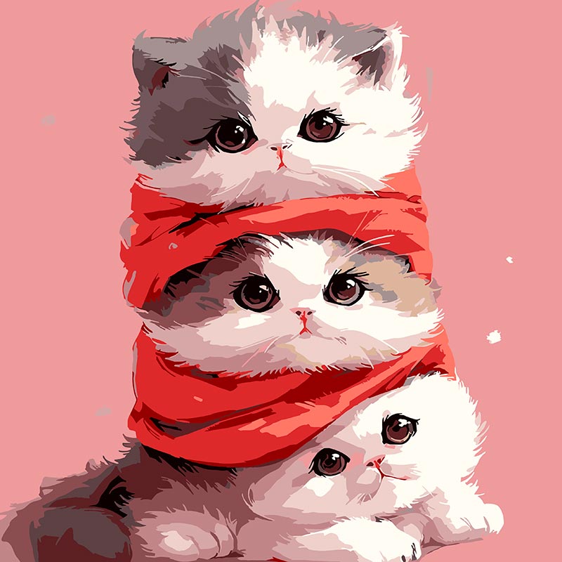 Картина за номерами Strateg Кошенята в шарфику 30х30 см ES-0909