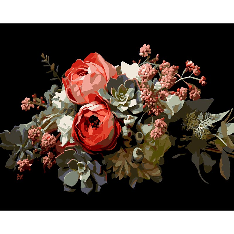 Картина за номерами Strateg Осіння композиція на чорному фоні 40Х50 (AH1270)