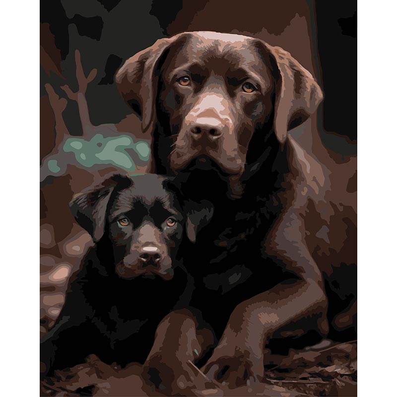 Картина за номерами Strateg Пес з цуценям на чорному фоні 40Х50 см AH1274