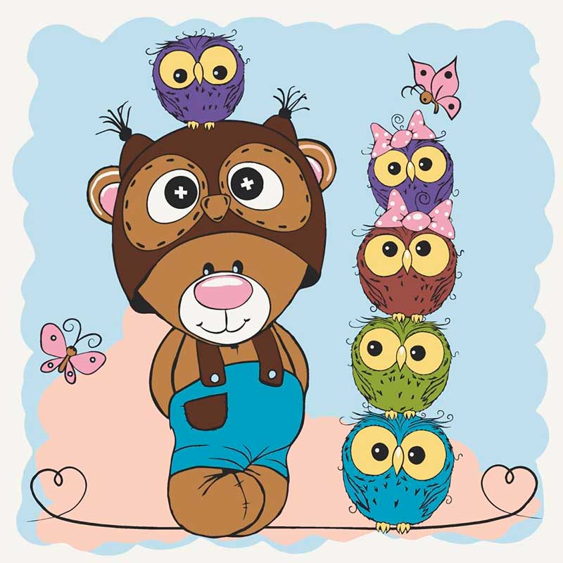 Картина за номерами "Ведмежатко з совенятами" 30*30 см
