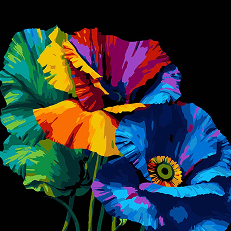 Картина за номерами Веселка маків Strateg на чорному фоні 40х40 см AV4040-77