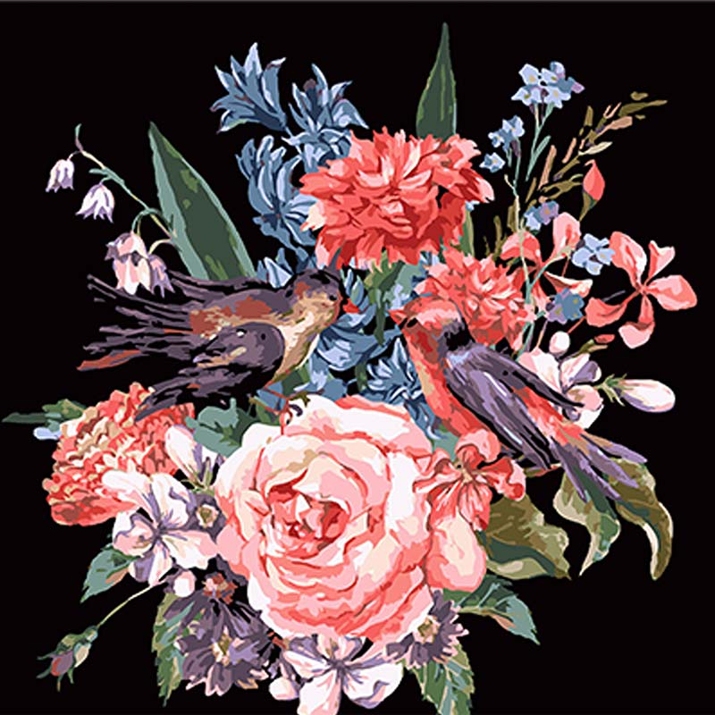 Картина за номерами Вінтажна квіткова акварель Strateg на чорному фоні 40х4 AV4040-25