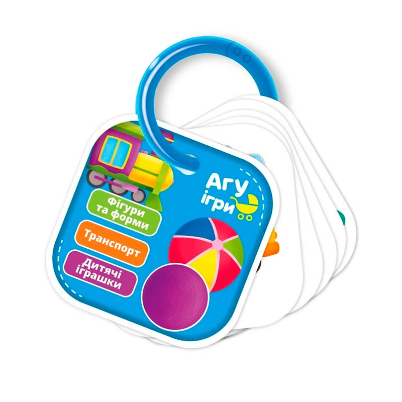 На картках зображені фігури, кольори, транспорт і улюблені іграшки. Веселе навчання — щодня!