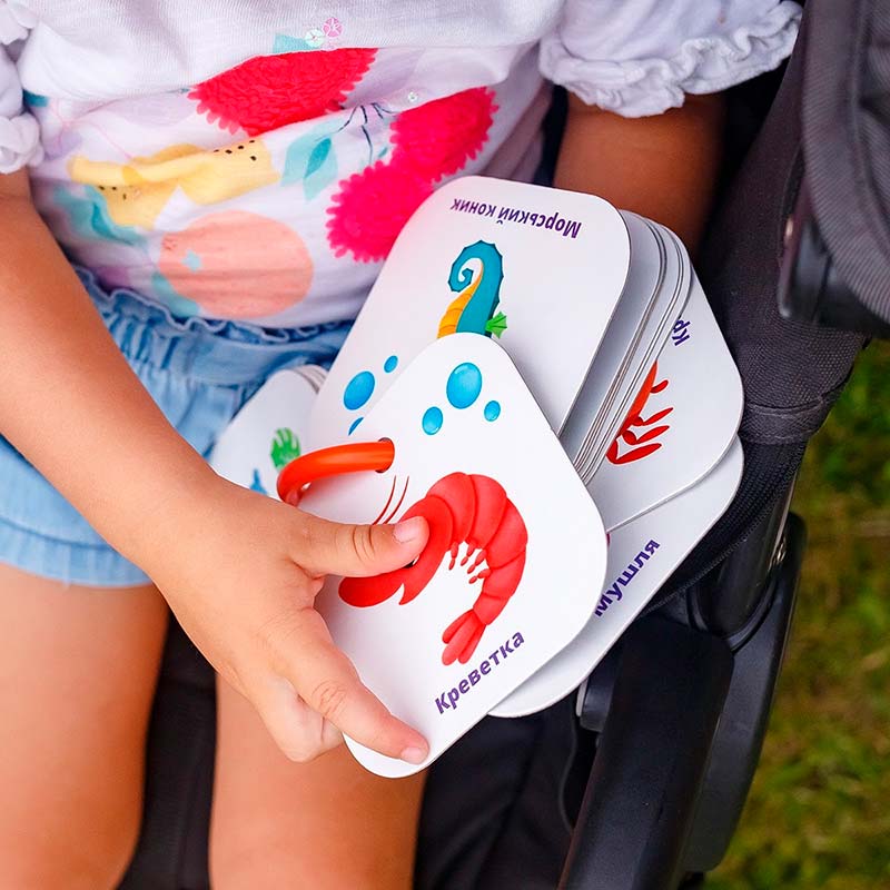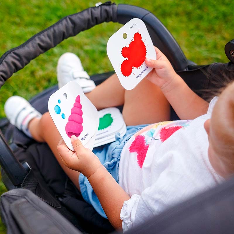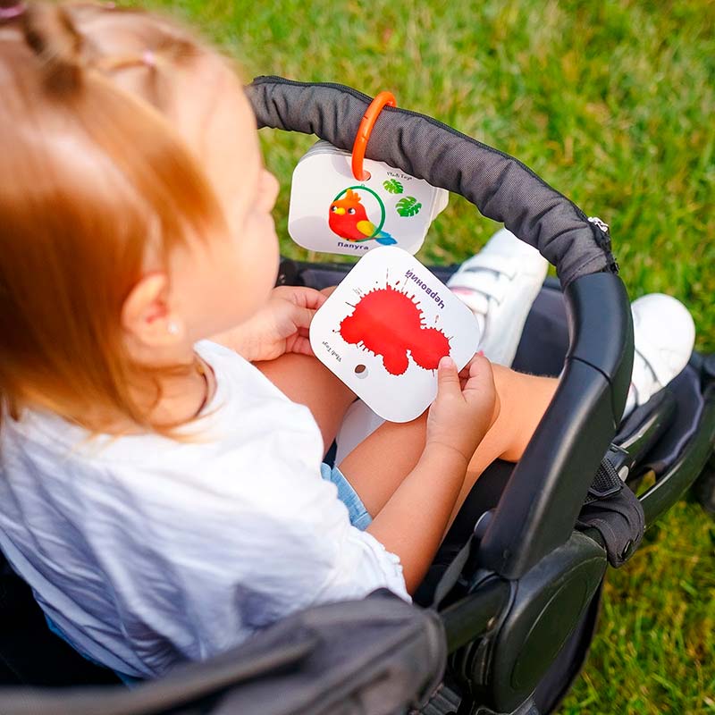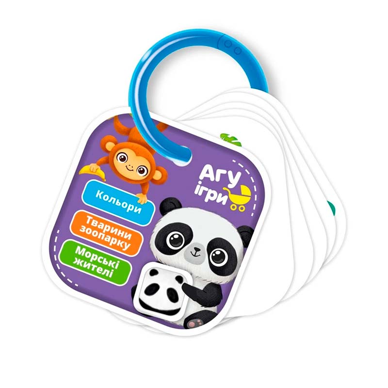 Картки на зручному кільці — їх легко взяти з собою в дорогу чи на прогулянку. Грайтеся, коли зручно!