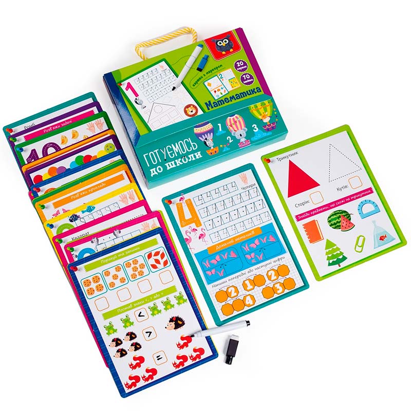 Картки з маркером Vladi Toys "Готуємось до школи: Математика" навчальні VT5010-22