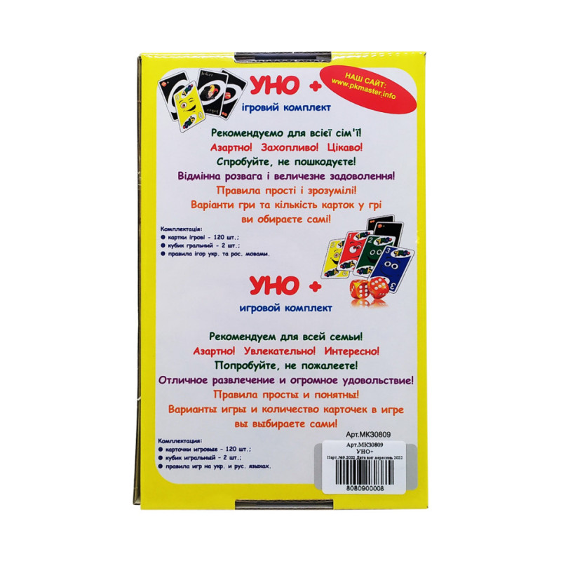Карткова гра "УНО+" (МКЗ0809) MKZ0809