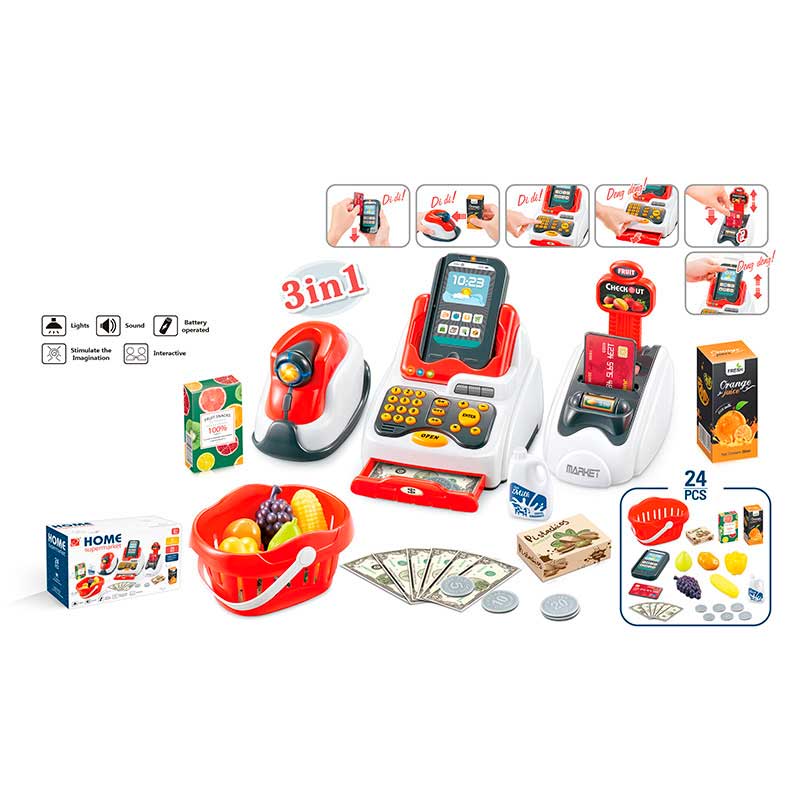 Каса арт. 668-119 (24шт/2) батар. світло-звук,касовий апарат,сканер,продукт