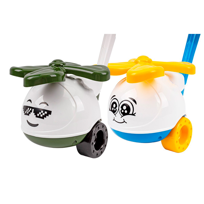 Каталка оснащена довгою ручкою (при потребі можна розкласти та зручно транспортувати чи зберігати), стійкою конструкцією, яка забезпечує зручне управління і комфортне тримання для маленьких ручок. Розкручуючи колеса каталки, дитина активує особливу функцію - сам гвинтокрил розпочинає свій політ!