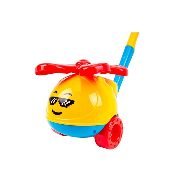 Ця каталка оснащена довгою ручкою (при потребі можна розкласти та зручно транспортувати чи зберігати), стійкою конструкцією, яка забезпечує зручне управління і комфортне тримання для маленьких ручок. Розкручуючи колеса каталки, дитина активує особливу функцію - сам гвинтокрил розпочинає свій політ!