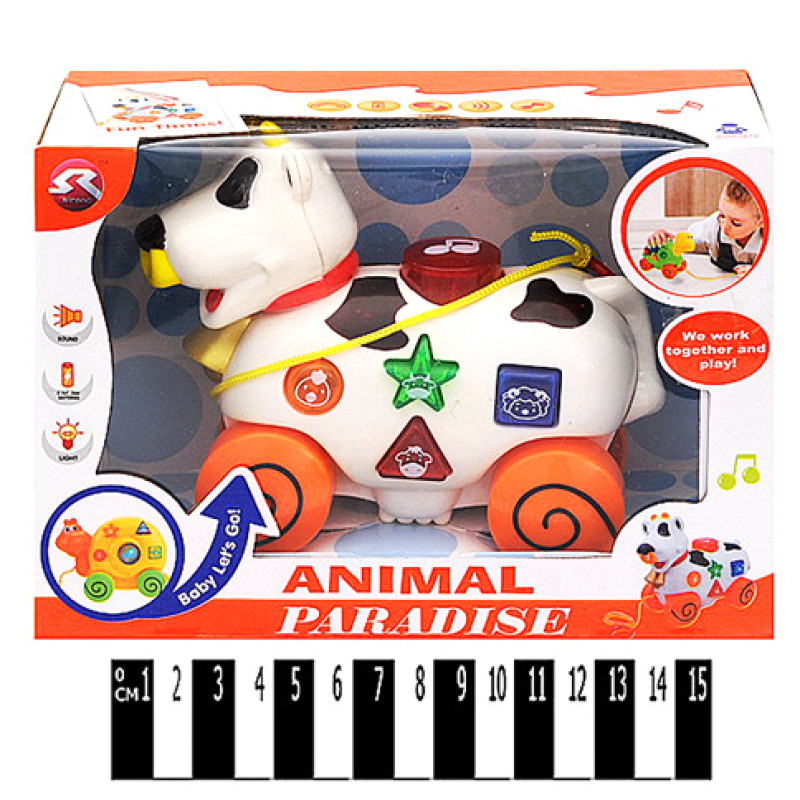 Каталка-корівка з муз. та світ. ефект. (коробка) Q-91 р.20,5*8*14,5 см * Q-91