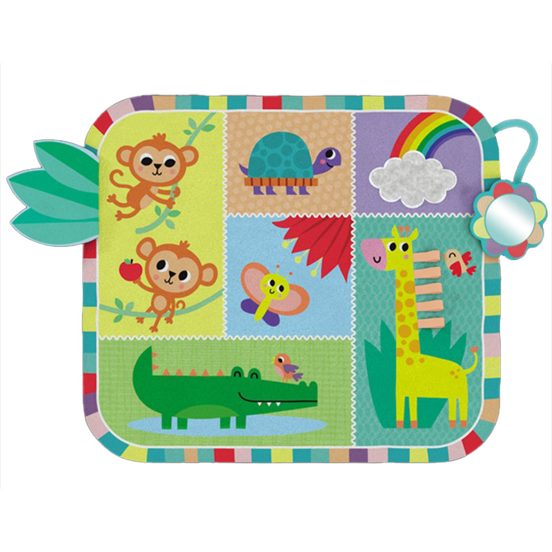 Цей двосторонній дитячий ігровий килимок із зображенням тварин - чудова новинка! Одна його сторона барвиста і яскрава, а інша контрастна чорно-біла! Цей дизайн створений з урахуванням дитячого сприйняття і сприяє зоровій стимуляції та сенсорному розвитку малюків. Сонячна пищалка, тактильні вставки, елементи, що шарудять, яскраві стрічки та м'яке безпечне дзеркальце запрошують малюків зробити перші відкриття. Так приємно торкатися, відкривати та натискати! Почнемо пізнавати світ! Характеристики: пищалка Квітка з фетру Яскраві стрічки Тактильна вставка Безпечне дзеркальце Шурхотливі елементи