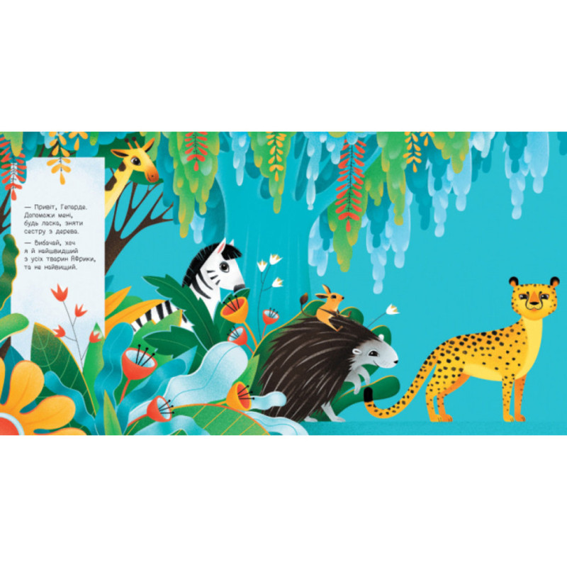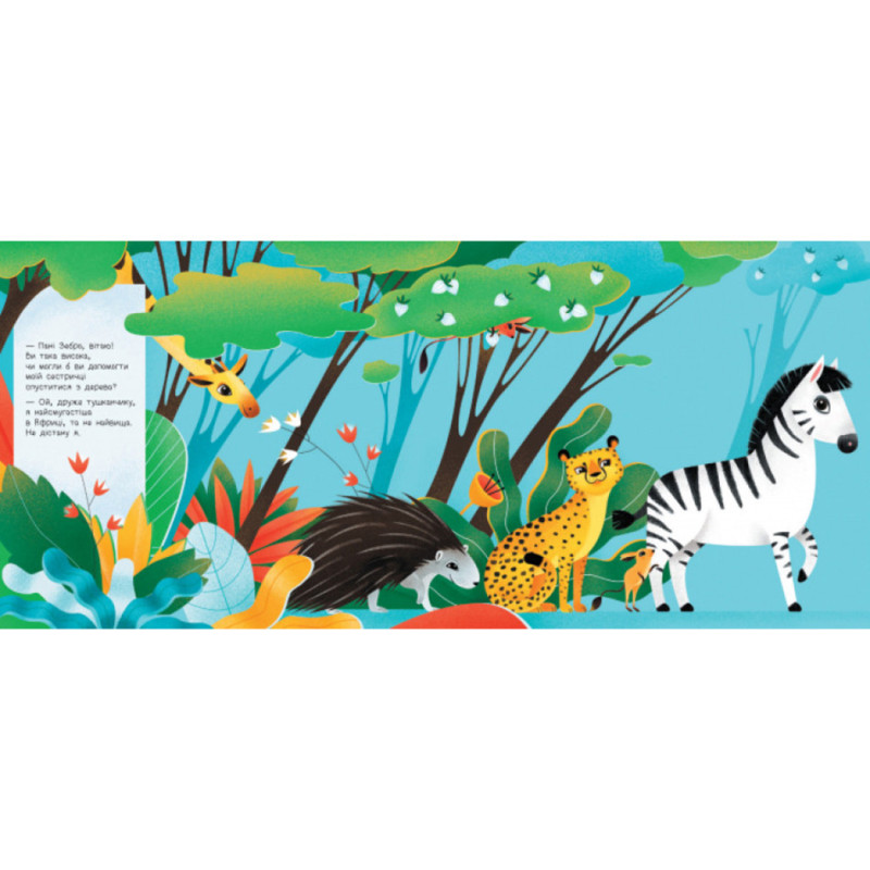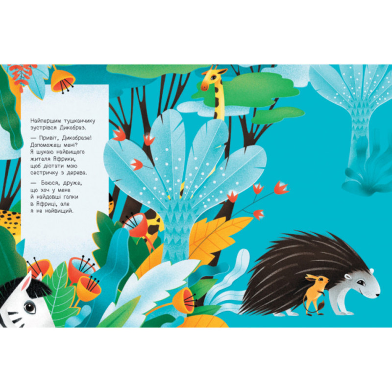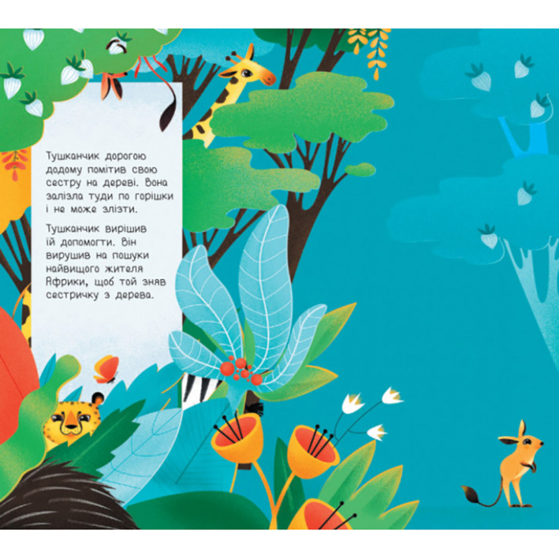 Разом з книжками серії насолоджуйтесь динамічними та комічними історіями про пошуки найвищого жителя Африки, або найменшого лісового мешканця. Слідкуйте за кумедними персонажами, котрі змінюють свій розмір, разом з розмірами сторінки.