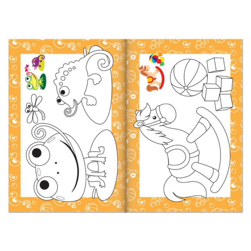 Блок: папір офсетний 100 г/м2, друк 4+4; ілюстрації для розфарбовування, кольорові картинки-підказки.