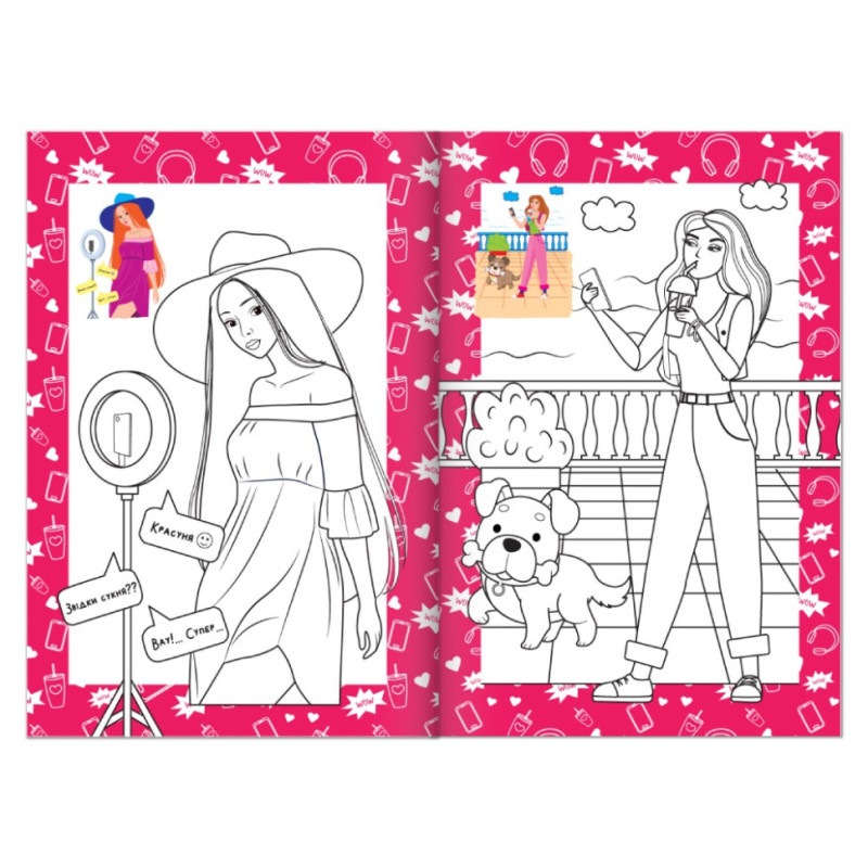 Книжка розмальовка "Модні блогери" РМ-48-40 с цветными подсказками