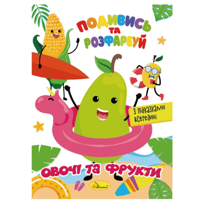 Книжка Розмальовка "Подивись і розфарбуй Овочі та фрукти" РМ-44-12 з підказками в середині