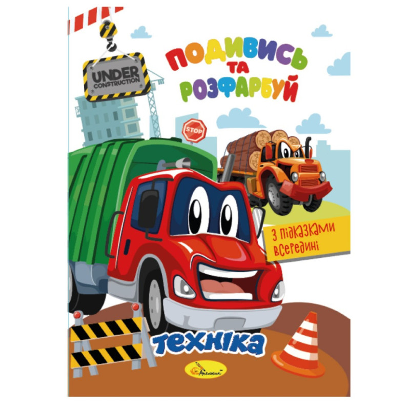 Книжка Розмальовка "Подивись і розфарбуй Техніка" РМ-44-02 з підказками в середині