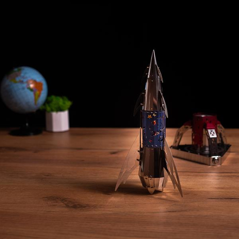 Попри більш ніж півстолітню історію, конструкція та дизайн космічних ракет майже не змінилися. І саме ними надихалися дизайнери 'Metal Time', створюючи конструктор для самостійної збірки 'AD ASTRA'.Поки що ракети досягли лише близького космосу. Це їхнє завдання - подолати опір земної атмосфери і відправити свій вантаж у плавання космічним простором. Однак поряд з назвою 'AD ASTRA' розробники 'Metal Time' наділили модель рисами космічних кораблів з творів письменників-фантастів минулого століття, маючи на увазі, що міжзоряні подорожі будуть здійснюватися саме космічними кораблями такого типу.Тренд в моделях 'Metal Time' - використання кольорової нержавіючої сталі. Тому 'AD ASTRA' набула різноманітних кольорів. Дві ступені ракети - блакитного кольору. А стилізоване полум'я, що виривається з сопла двигуна - червоного кольору. До корпусу прикріплені деталі, що зображують 'плавники' - стабілізатори, та повітряні потоки, які ракета розсікає в польоті.Середня частина корпусу має характерну дзеркальну поверхню з нержавіючої сталі, в якій вирізаний орнамент на космічну тематику, що нагадує ілюстрації з науково-фантастичних романів.Але найголовніше, що модель 'AD ASTRA', зібрана умілими руками, оживає завдяки вбудованому джерелу світла і можливості обертатися. Світло пробивається крізь вирізані в корпусі зірки і залишає відблиски на стінах і стелі кімнати. Перетворюючи модель на нічник, а стелю на маленький планетарій.Шанувальники наукової фантастики, космічних серіалів і романтики, які мріють про далекі світи, будуть задоволені конструктором 'AD ASTRA', а колекціонери моделей 'Metal Time' поповнять свої колекції ще одним видатним експонатом.Як і всі збірні конструктори 'Metal Time', модель 'AD ASTRA' виготовлена з екологічно чистої нержавіючої сталі, що використовується в харчовій промисловості та дозволена для виробництва товарів народного споживання та іграшок.'AD ASTRA' - це втілення одвічного прагнення людства розгадати таємниці Всесвіту і дізнатися, що приховують тисячі зірок на нічному небі: інше життя чи неживе каміння. Як люди наважилися відправити в космос супутники, щоб розгадати ці таємниці, так і на тих, хто наважиться зібрати модель ракети, чекає чимало випробувань. 'AD ASTRA' - модель середньої складності, але на її складання піде цілий день, а то й два. Точність, акуратність і прагнення до втілення своїх мрій - ось що вимагатиме від вас ця модель.Результат неодмінно порадує. Оригінальний предмет інтер'єру, красивий аксесуар, стильний світильник і захоплююча іграшка - можливості використання зібраної моделі дуже широкі. Це чудовий спосіб провести вихідні у спільній сімейній технічній творчості.Для 'Metal Time' модель 'AD ASTRA' - одна з перших у лінійці 2022 року, і вона демонструє нові тренди конструкторів у новому році. Кольоровий метал, світлові ефекти та багато рухомих деталей стають новим напрямком розвитку наших конструкторів. Точний розкрій набору виключає можливість порізів в процесі складання.Приємні тактильні відчуття вигідно відрізняють сталеві деталі від дерев'яних або пластикових, що використовуються в інших конструкторах. Процес складання і результат у вигляді готової моделі принесе вам задоволення відчути себе інженером-конструктором.Модель 'AD ASTRA' може зайняти почесне місце трофею, нагороди або стати частиною дизайну приміщення. Зручне плоске пакування з еколог