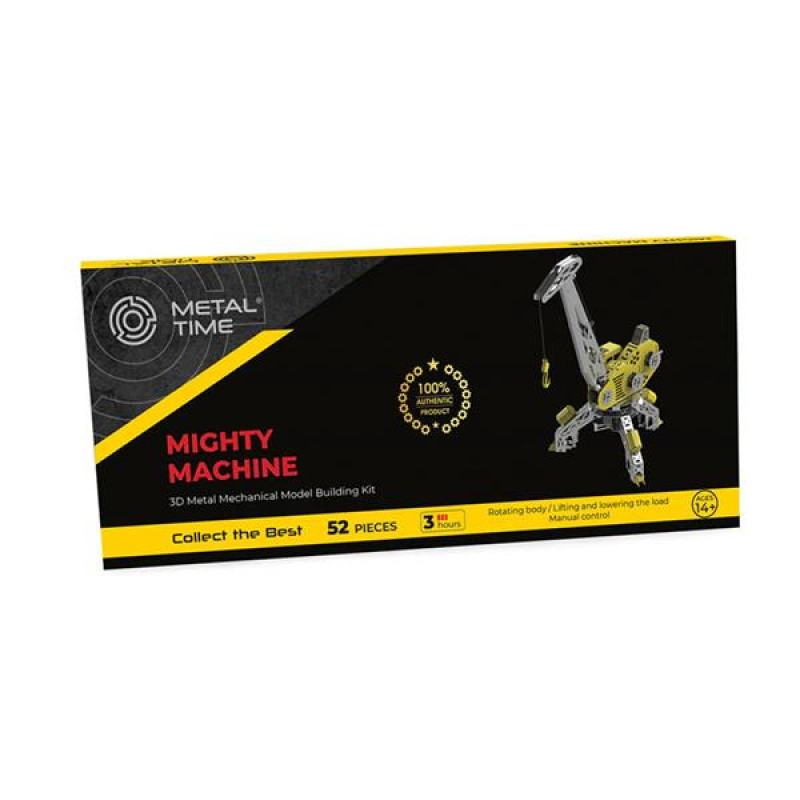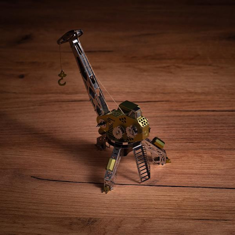 Конструктори 'Metal Time' проаналізували багато видів вантажопідйомних машин і за основу своєї нової самозбірної моделі обрали прототип портового крана. Модель демонструє масштабний механізм для роботи з великими вантажами. Тому її назвали 'Mighty Machine'.Модель для самостійного складання 'Mighty Machine' складається з платформи з чотирма опорними 'ногами', стріли, кабіни та підйомного механізму. Модель складається з багатьох рухомих частин. Стріла може змінювати кут нахилу, тим самим регулюючи висоту, на яку можна підняти вантаж. Кабіна та стріла обертаються на платформі на 360 градусів. Кран оснащений системою шестерень, які дозволяють йому імітувати рух механізму підйому, натягуючи канат з гаком через систему блоків. Положення стріли, а також підйом і опускання вантажу здійснюється вручну за допомогою маховиків. Механізм також має два стопора для фіксації обох коліс.Модель 'Mighty Machine' виконана з використанням кольорової нержавіючої сталі, що надає їй оригінальної форми яскравої деталі модельного ряду. Це перетворює її і в яскраву іграшку, і в частину інсталяції або макета в корпоративних кольорах, або елемент декору приміщення.'Mighty Machine' виконана з великою увагою до деталей. Сходи, двері кабіни, пульт управління, гак, орнаменти та конструктивні елементи надають їй надійності та оригінальності. Чотири опори роблять модель стійкою і дозволяють використовувати її як підйомний кран у дитячих іграх, не боячись, що вона може впасти.Як і всі конструктори 'Metal Time', модель 'Mighty Machine' створена з екологічно чистої нержавіючої сталі, що використовується в харчовій промисловості та допущена до виробництва товарів народного споживання та іграшок.Точний розкрій набору виключає можливість порізів в процесі складання. Деталі точно підігнані одна до одної і не створять проблем у з'єднанні. Приємні тактильні відчуття, міцність та естетика матового металу вигідно відрізняють сталеві деталі від дерев'яних або пластикових, що використовуються в інших наборах для самостійного складання. Зручна плоска упаковка з екологічно чистого обробленого картону поєднує компактність і естетику статусного подарунка.Кожен покупець моделі 'Metal Time' отримує клубний бейдж, листівку з подякою та унікальний номер, присвоєний кожній моделі. Вступ до клубу 'Metal Time' відкриває додаткові можливості для кожного покупця.Модель 'Mighty Machine' - чудовий подарунок для любителів технічної творчості, а також естетики складних металевих конструкцій. Кольорові деталі також перетворюють модель на чудову іграшку для використання на 'будівельних майданчиках' у дитячій кімнаті.Крім того, модель чудово впишеться в інтер'єр як оригінальний елемент декору. На робочому столі вона продемонструє ваше захоплення конструюванням або причетність до будівельного бізнесу. А може просто 'відвантажити' вам пенал з олівцями.Модель крана можна використовувати як частину інсталяції або макета будинків, будівельного майданчика, виробничого порту або настільної гри, присвяченої економіці. Також 'Mighty Machine' стане чудовим подарунком для інженера, керівника будівництва, фахівця з логістики та любителя колекціонування красивих металевих моделей.