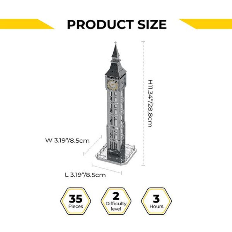 Дизайнери з Metal Time створили саморобну модель 'The Great Bell' на основі пропорцій та зовнішнього вигляду знаменитої лондонської годинникової вежі.Як і оригінал, модель містить багато деталей, які порадують любителів самостійної технічної творчості. І так, він показує час завдяки електронному годинниковому механізму. А ще його можна перетворити на нічник і прикрасити ним спальню. Час, витрачений на складання моделі, не буде витрачений даремно.Модель 'The Great Bell' - це стійкий прототип годинникової вежі, який можна використовувати для різних цілей.'The Great Bell' оснащений платформою, яка забезпечує його стійкість. Багато архітектурних деталей реальної неоготичної вежі відображені в деталях моделі. Тому її складання пов'язане з невеликим екскурсом в історію світової архітектури.Головною складовою вежі є годинник. Завдяки електронному годинниковому механізму годинник показує реальний час і працює від батарейок (не входять до комплекту), які можна легко замінити.Крім того, 'The Great Bell' можна перетворити на настільну лампу або нічник, помістивши всередину електричне джерело світла, наприклад, світлодіодну свічку (не входить до комплекту) або інше джерело світла.Увага! Будьте вкрай обережні при використанні джерел відкритого вогню в якості світильника! Не залишайте палаючу свічку без нагляду! Необережність може призвести до пожежі!'The Great Bell' зроблений з великою увагою до деталей. Вікна, орнаменти на стінах, дах з текстурою черепиці, дизайн годинника надають йому автентичності та оригінальності.Як і всі конструктори 'Metal Time', 'The Great Bell' виготовлений з екологічно чистої нержавіючої сталі, харчової, дозволеної для виробництва споживчих товарів та іграшок.Точний розкрій набору виключає можливість порізів під час складання. Деталі точно підігнані одна до одної і не створюватимуть проблем при складанні.Приємні тактильні відчуття, міцність та естетичність шліфованого металу вигідно відрізняють сталеві деталі від дерев'яних або пластикових, що використовуються в інших наборах конструкторів. Зручна плоска упаковка з екологічного картону, що підлягає вторинній переробці, поєднує в собі компактність і естетику статусного подарунка.З кожною покупкою моделі 'Metal Time' ви отримуєте клубний бейдж, листівку з подякою та унікальний номер, який присвоюється кожній моделі. Вступ до клубу 'Metal Time' відкриває додаткові можливості для кожного покупця.Конструктор 'The Great Bell' - чудовий подарунок для поціновувачів історичної архітектури та світових пам'яток.Процес складання моделі може стати захопливим квестом для компанії друзів чи родини. Кілька годин кропіткої роботи будуть винагороджені приємним сувеніром, який можна використовувати по-різному.По-перше, модель можна використовувати як прикрасу інтер'єру. Висока і витончена вежа може зайняти місце на робочому столі або полиці, підкреслюючи статус власника.По-друге, 'The Great Bell' можна використовувати як годинник. Електронний годинниковий механізм показує точний час і перетворює модель на надзвичайний функціональний гаджет.По-третє, у внутрішню частину вежі можна помістити електронне джерело світла або свічку, що перетворить її на оригінальний світильник, нічник або годинник з підсвіткою. Вони займуть гідне місце в зонах відпочинку вашої оселі.По-четверте, зібрана модель може стати іграшкою. Як частина макета 