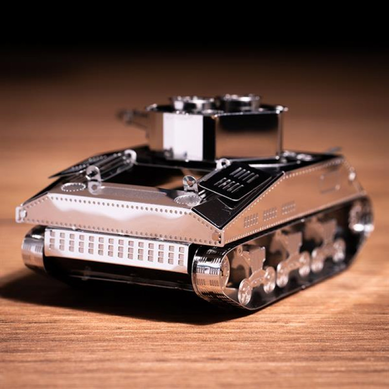'Шерман' був одним з найнадійніших танків свого часу. Він був простий в обслуговуванні та рідко ламався. Іншою важливою перевагою танка була його мобільність. 'M4' швидко розганявся і володів високою бойовою маневровістю.У популярній танковій MMO-грі 'World of Tanks' 'Шерман' є популярним танком V рівня. Він має визначні характеристики, які допомагають йому здобувати перемоги у віртуальних битвах, і використовується досі.Самостійне складання моделі 'M4 Sherman' - це співпраця між 'Wargaming' та 'Metal Time Workshop'. Логотип WoT розташований на нижній частині моделі, а кожен набір поставляється з бонусним пакетом від Wargaming. У ньому міститься код активації гри, що дозволяє гравцям почати грати в найпопулярнішу танкову онлайн-стратегію в реальному часі, а також легкий танк 'T2' + слот + 7 днів преміум-акаунту 'WoT' + 500 золота. Відмінний старт для початківця онлайн-танкіста!Модель 'M4 Sherman' має впізнаваний дизайн легендарного середнього танка, включаючи унікальний профіль, вежу та ходову частину з шістьма котками та характерною підвіскою, люки, радіаторні грати та озброєння. Текстури та зображення нанесені на поверхні за допомогою електрохімічного травлення, що надає моделі подібності до оригінальної бойової машини. Всі деталі моделі виготовлені з нержавіючої сталі, що використовується у харчовій промисловості, виробництві товарів народного споживання та іграшок. Складання моделі 'M4 Sherman' виключає заподіяння будь-якої шкоди власнику. Точне різання дозволяє збирати моделі без використання додаткових інструментів, паяння чи склеювання.Зібрану масштабну модель 'M4 Sherman' можна використовувати як сувенір, прикраси інтер'єру, цінний приз для шанувальників 'WoT', використовувати для створення інсталяцій, макетів або реконструкцій танкових битв Другої світової війни. Вона займе гідне місце на стенді з колекцією моделей 'Metal Time' та грою 'World of tanks'. Але головне її призначення - технічна творчість, спільне моделювання та розвиток навичок ручної роботи.Набори моделей 'Metal Time' спонукають власників вивчати історію техніки та розвивати конструкторські навички. Кожна модель має унікальний серійний номер, що робить їх об'єктами для колекціонування та обміну. Клуб конструкторів 'Metal Time' - це зростаюча спільнота людей, захоплених конструюванням.