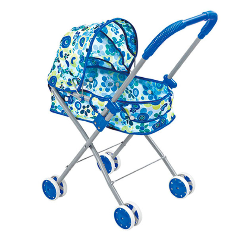 Коляска для ляльок синя - оснащена сучасним квітково-синім принтом,
