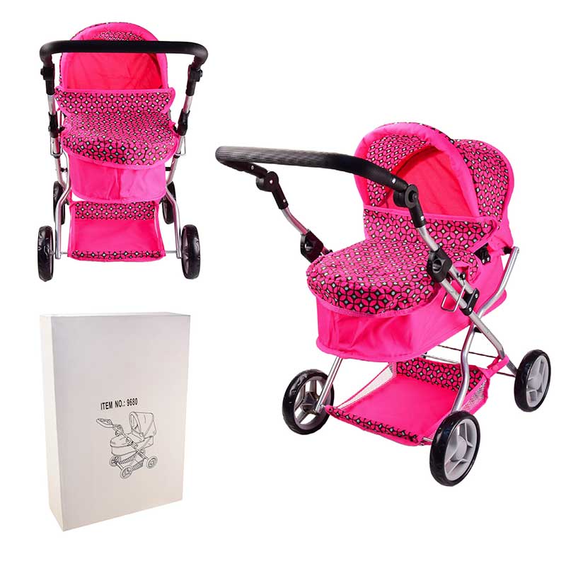 Коляска металева з люлькою + кошик регулюється ручка 9680