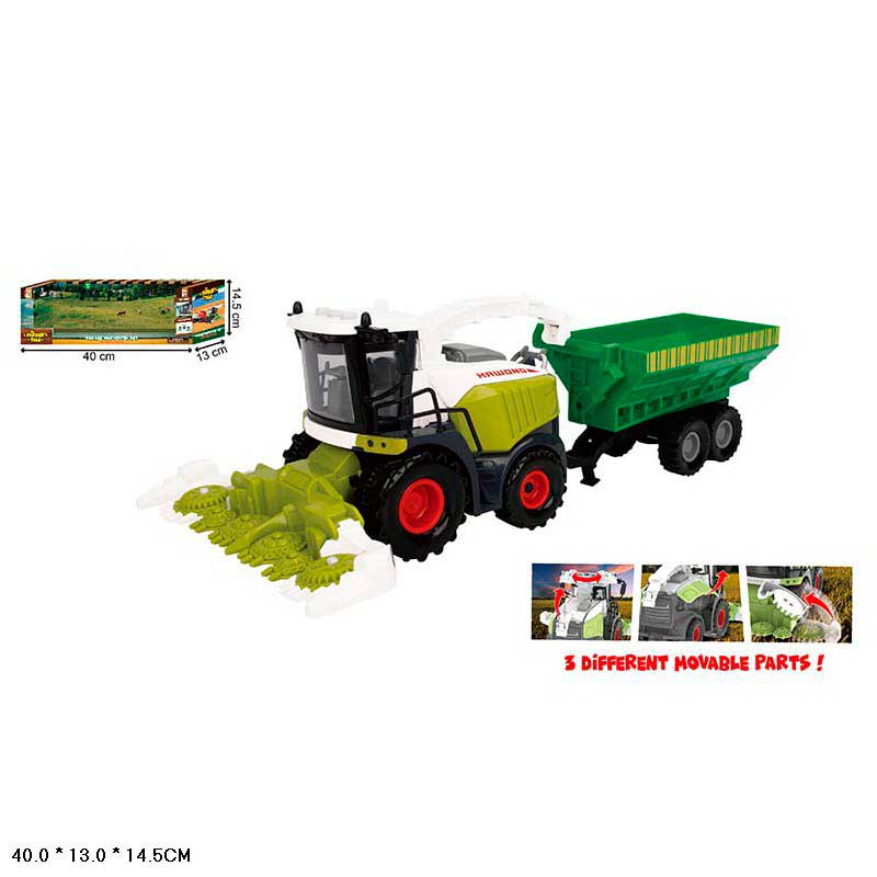 Комбайн із причепом зі світлом і звуком на батарейках зелений 550-3C