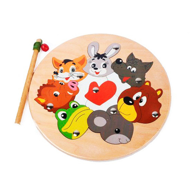 Габаритний розмір виробу 210 ? 210 мм. Склад комплекту: рамка фанерна нефарбована розміром 210 ? 210 мм - 1 шт., фарбовані елементи у формі: вовка - 1 шт., Зайця - 1 шт., Жаби - 1 шт., Кабана - 1 шт., Ведмедя - 1 шт. миші - 1 шт., лисиці - 1 шт., елементи фону білого кольору - 3 шт., елемент червоного кольору у формі рукавички - 1 шт., дерев'яна паличка циліндричної форми (діаметром 8 мм, довжиною 150 мм), з'єднана з магнітною кулькою (діаметром 4 мм) мотузкою з полімерного матеріалу завтовшки 2 мм і довжиною 100 мм - 1 шт. Елементи у формі звірів містять металевий сердечник діаметром 5 мм по центру самої фігури. Виріб призначений для дітей старше 3-х років. Упаковано в термоплівку