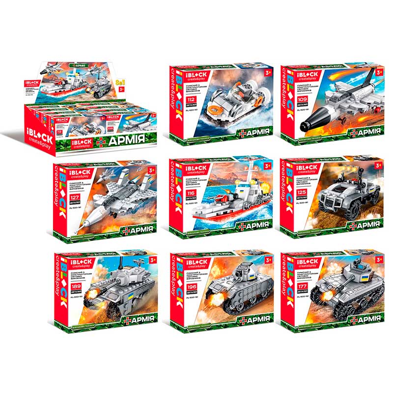 Конструктор АРМІЯ, 109-196дет, 8 видів, 8шт/диспл. боксі 42,5*17,5*16,5см