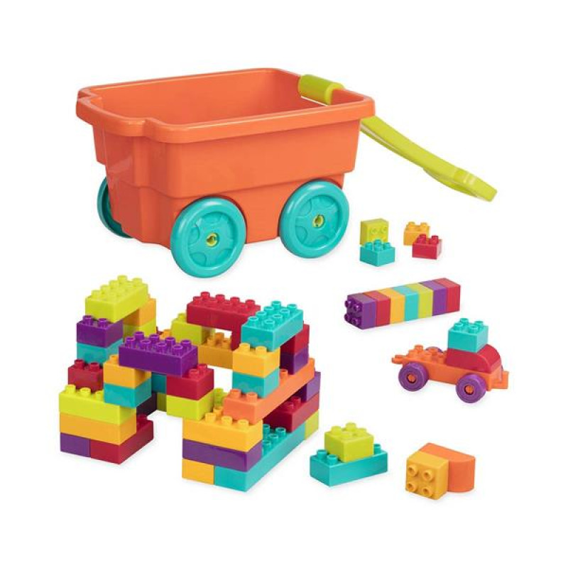 Різнокольорові яскраві деталі конструктора легко з'єднуються одна з одною.Ви з малюком зможете побудувати все, що завгодно: будинок, місто, машинку на колесах або височенну вежу.Деталі складаються в красивий візочок на колесах зі зручною довгою ручкою.Створено для маленьких пальчиків і великих ідей!Розмір упаковки: 35х26х20 см.Рекомендовано для дітей віком від 2 років.
