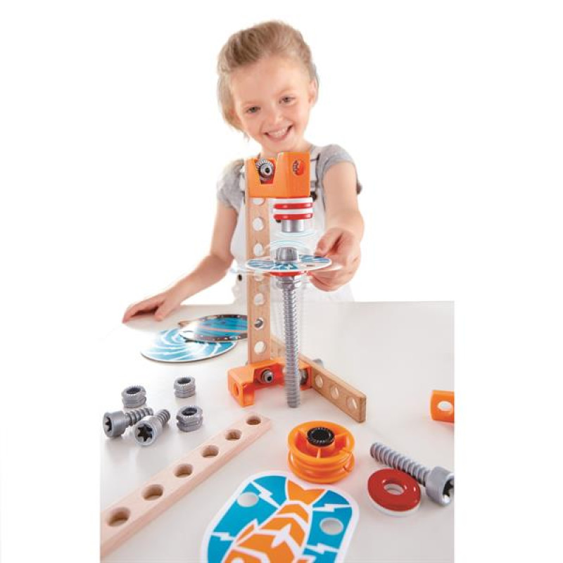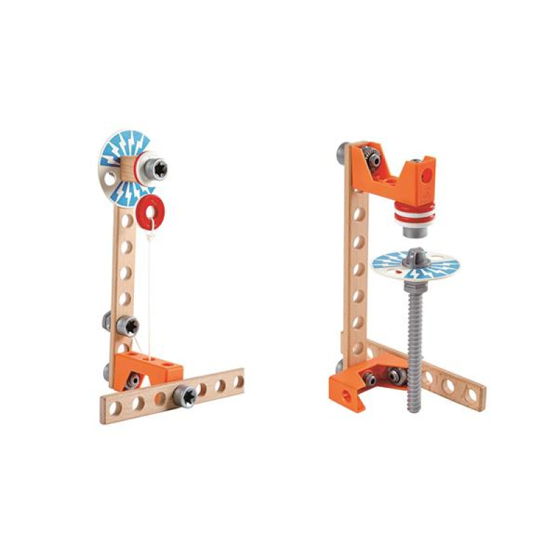 Досліджуйте світ науки про магніти за допомогою цього набору з 7 експериментів. За допомогою зрозумілої інструкції дитина створить свої перші винаходи: гравітаційний магніт, магніт, що балансує, стрибаючий магніт, планету, магнітну риболовлю. Що є в наборі: 4 магніту, блок з 1 отвором, 2 планки з 7 отворами, планка з 9 отворами, 2 довгих гвинта, 6 коротких гвинтів, 6 гайок, 6 кришок, стрижень, мотузка, 2 підставки з 3 отворами, обертач з 3 отворами, маленьке колесо, 4 картинки, паперова рибка, викрутка. Всього 34 деталі. Ігрові набори серії Junior Inventor (юний винахідник) використовуються для розвитку логічного мислення і розуміння принципів науки, технологій, інженерії, мистецтва і математики (STEAM). У всіх деталей заокруглені краї. Сумісний з іншими наборами Junior Inventor. Рекомендований вік: 4 роки і старше. Конструктор Hape Junior Inventor Магнітна лабораторія (E3033) відповідає міжнародним стандартам якості EN 71 і ASTM F963. Батарейки не потрібні.