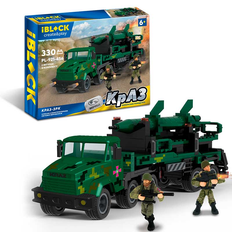 Конструктор IBLOCK арт. PL-921-456 (12шт) Армія КрАЗ ЗРК 330дет 2 фігурк PL-921-456