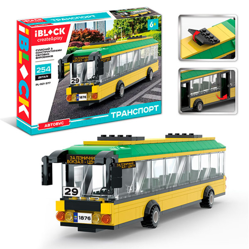 Конструктор IBLOCK ТРАНСПОРТ Автобус 254 дет. інструкціія та наліпки у ком PL-921-377